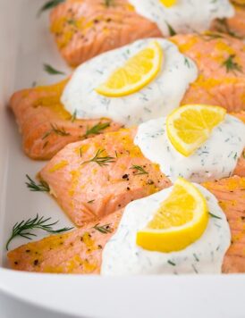 Baked Lemon Salmon with Creamy Dill Sauce