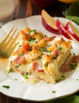 Herb Crepes with Eggs, Swiss, Ham and Browned Butter
