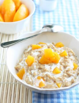 Peach Salad {with Grilled Basil Chicken and White Balsamic-Honey Vinaigrette}