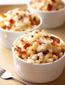My tricks to a good crockpot mac and cheese are to use a combination of cream, water, and evaporated milk – instead of regular or whole milk so it doesn’t curdle in the cheese sauce. Then also wait until closer to the end to add the shredded cheese so that doesn’t overheat and separate.