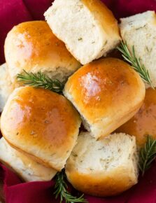 These dinner rolls have the best melt-in-your-mouth texture with a light chew, a rich buttery flavor and just a faint hint of background sweetness. They’re the perfect side to homemade Vegetable Soup or Minestrone Soup!