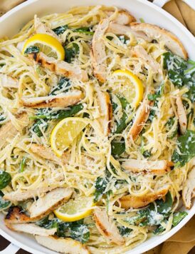 Lemon Ricotta Parmesan Pasta with Spinach and Grilled Chicken