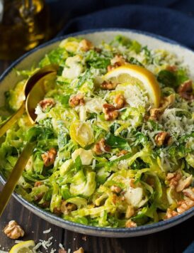 Shredded Brussels Sprout Salad with Romano Cheese, Toasted Walnuts and Lemon Vinaigrette