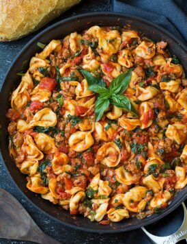 One Pan Turkey Sausage Spinach and Marinara Tortellini