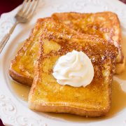 Eggnog French Toast is the Christmas morning breakfast of your dreams! But don’t worry—I won’t tell anyone if you make this the first day that you find eggnog in the stores. Classic French toast is given a holiday twist with an eggnog batter that tastes like holiday magic.